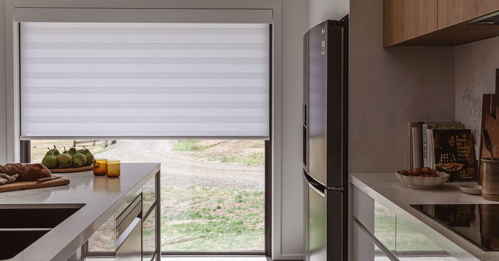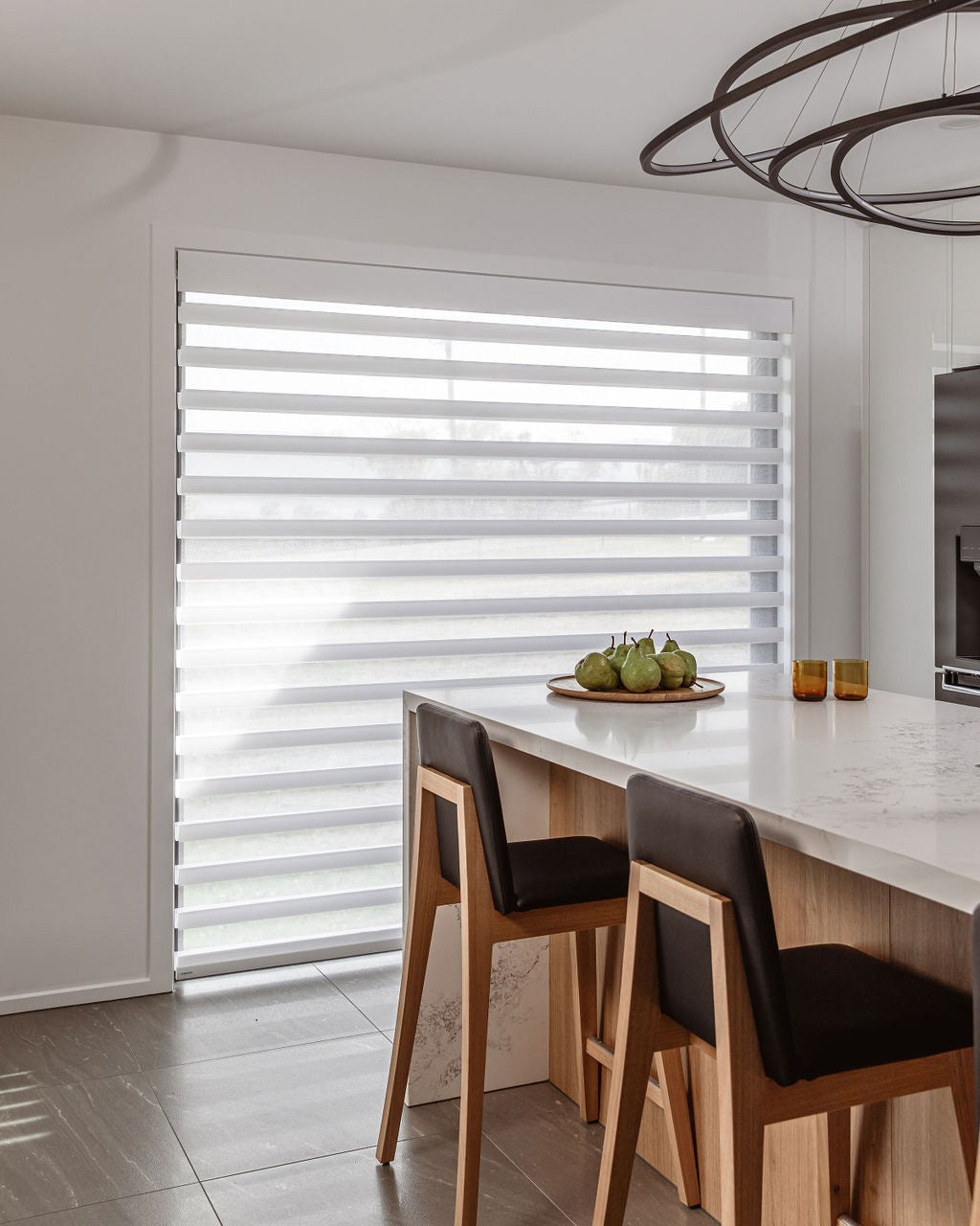 Perfect Sheer is a modern all-in-one blind that combines the softness of sheer fabric with the functionality of a roller blind. It provides gentle light filtering while still allowing you to raise the blind completely when desired.